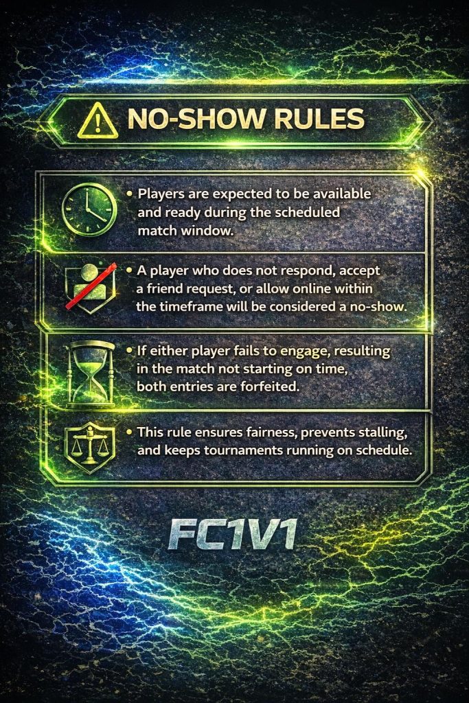 Fair-play rules apply, and outcomes are decided based on evidence such as screenshots, match status, and timestamps.